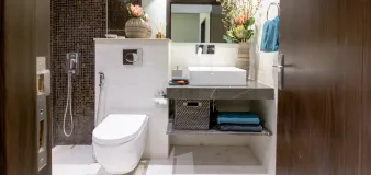 Enjoy a marble quartz countertop complemented with designer accessories to ensure a luxurious experience.